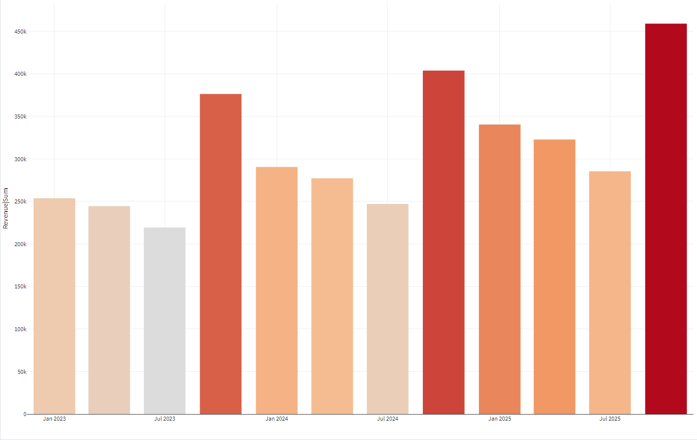 Analyzing sales volume and revenue by month, quarter, and year. The data includes the fields: date of sale, number of customers, sales volume, and revenue. The database contains information for several years.